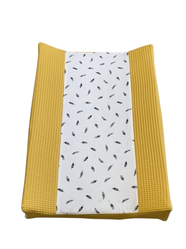 Aankleedkussen hoes Oker geel kleine veertjes