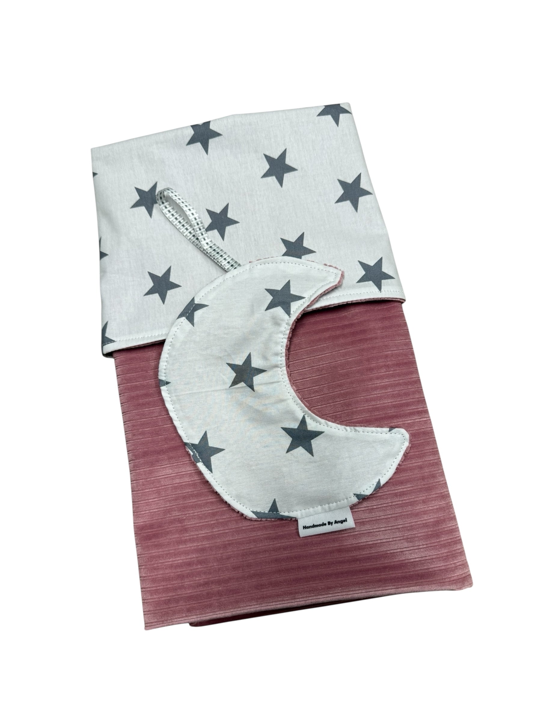 Speendoekje maan fluweel rib roze grote sterren